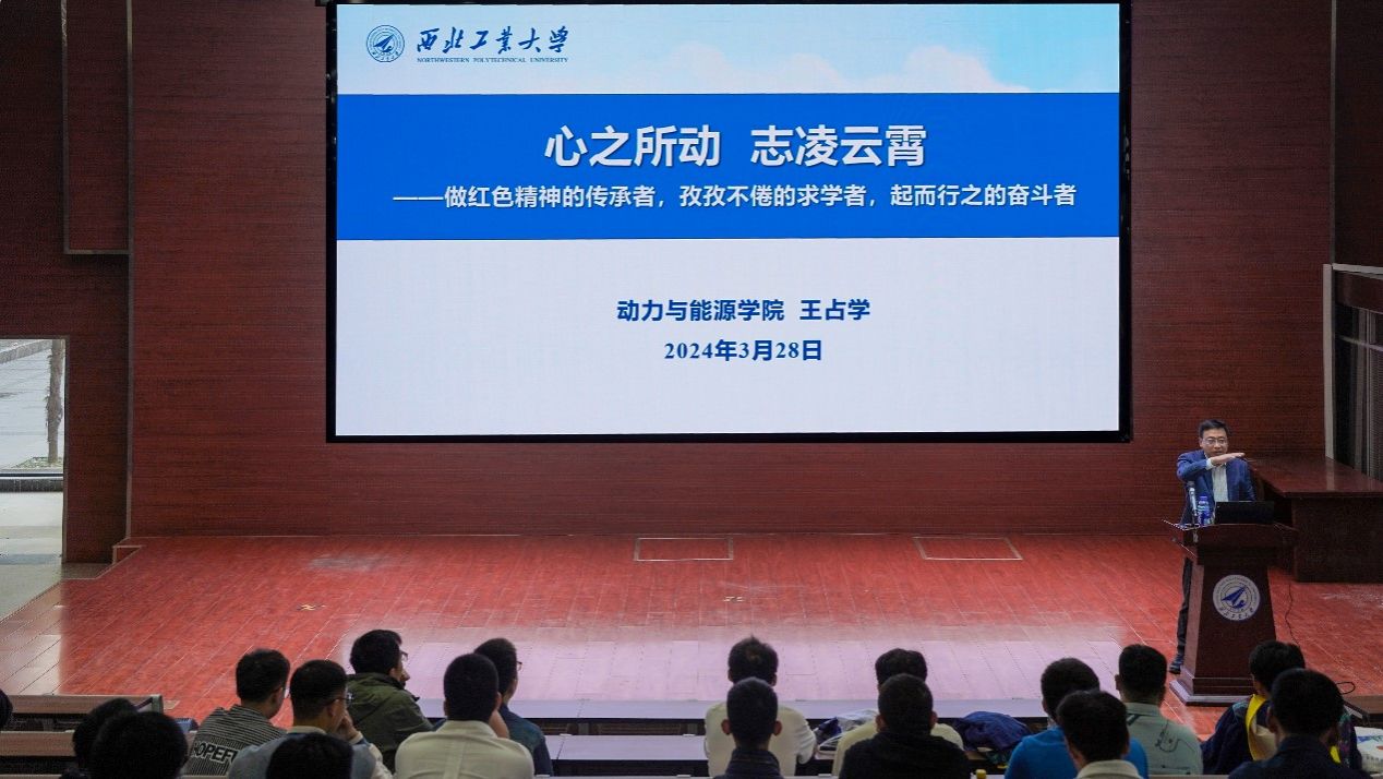 在人才培养方面的贡献。学院培养了我国第一位航空发动机博士,航发三总师,“一个宿舍两院士”、“一个小班航发三大主机厂的董事长”等。动能人不负时代,不负韶华为中国航发事业做出了自己的贡献,为“西工大现象”添砖加瓦。王占学鼓励同学们向杰出校友学习,不断书写奋斗青春的新篇章。