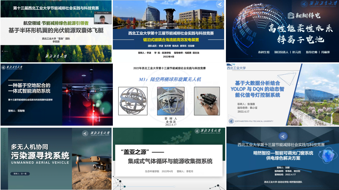 本届入围决赛答辩的作品类型丰富,专业特色突出,不仅符合大赛“节能减排、绿色发展”的理念,而且体现了较高的科技水平。在决赛中,参赛队员们围绕作品主题展开思想碰撞和创意比拼,展示理论与实践结合的创新成果,其中“明然智控—智能可调光门窗系统的供电绿色解决方案”、“翱翔锌电”、“M3:陆空两栖球形旋翼无人机”、“盖亚之源—集成式气体循环与能源收集微系统”、 “锚泊式磁耦合海流能高效发电装置”、“无量高性能管道巡检潜航器”等作品均完美展现出了全体参赛学生对“绿色”、“节能”以及“可持续发展”等概念的深入理解和有力诠释,展示了我校大学生为国家早日实现“双碳”目标所做出的努力与贡献。