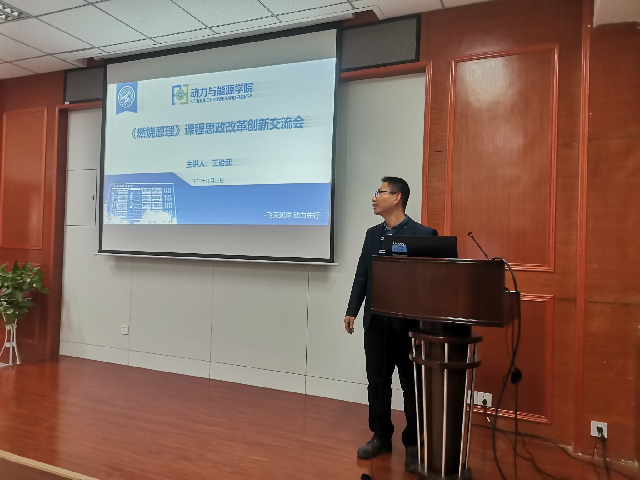 课程思政示范课程《燃烧原理》为例,分享了研究生课程思政的可行做法和先进案例,并与老师们进行了交流和讨论。