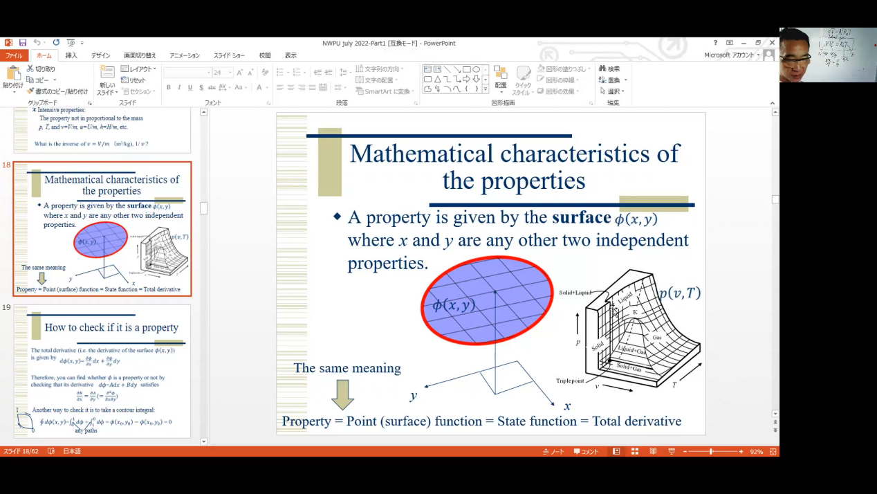 讲授《工程热力学》的Akira Nakayama(中山显)教授,致力于流体传热传质方面的研究,包括多孔介质传热传质的基础理论及应用、流体传热传质的数值模拟等。本课程是去年暑期课程的延续,既有深入的理论学习,又有工程应用。中山教授以风趣幽默的授课方式向学生们讲授热力学第一定律和热力学第二定律等内容,对封闭系统和开放系统进行了详细的描述,重点介绍了各种热力学概念,如内能、焓、熵、亥姆霍兹自由能和吉布斯自由能,以及它们的重要性和物理意义。针对工程应用,讲授了空气标准循环,如奥托循环、狄塞尔循环、焦耳-布雷顿循环和喷气发动机循环,并详细介绍了控制其循环效率的因素。因为工程热力学的概念繁多,且抽象复杂,因此这门课程一直让初学者头痛不已,中山教授将历史背景与工程应用相结合,帮助学生理解工程热力学概念和公式背后的物理意义,使同学们获益颇多。