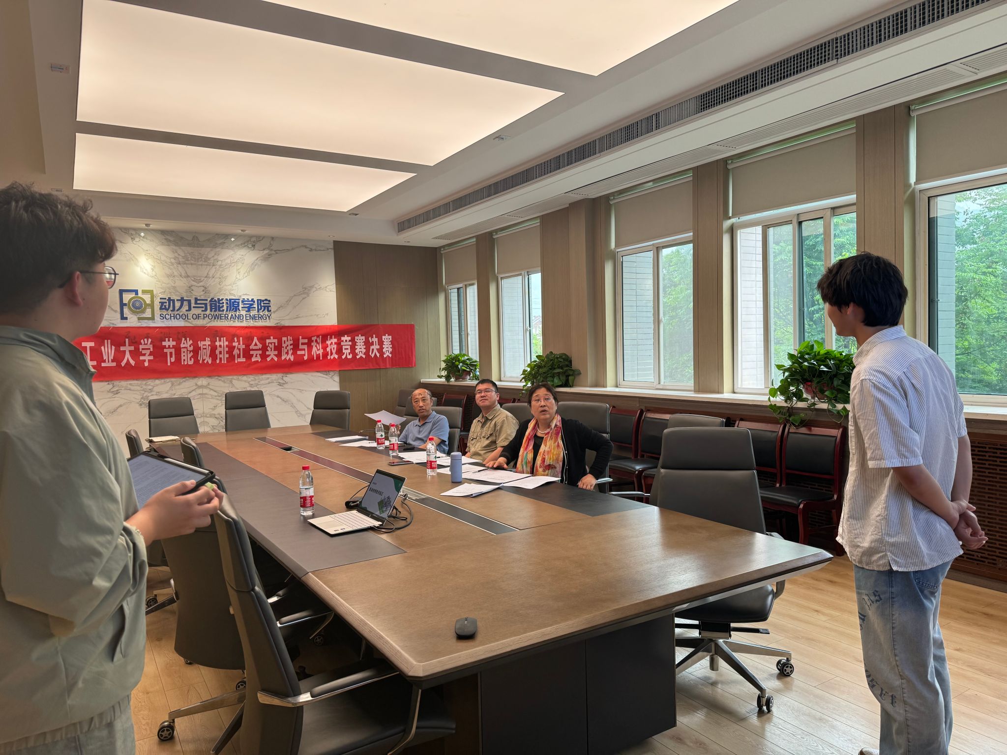 本次比赛严格遵守公平公正的原则,邀请了多位指导参赛经验丰富的评委。评委们对全体参赛学生的作品均给予中肯的评价,指出作品修改与完善的建议,鼓励学生们再接再厉,更加全面深入地落实节能减排实践,在国赛中取得新的突破。经过专家评审、小组讨论、评审合议等环节将选拔出本届竞赛的获奖作品。下一步,将选拔优秀作品代表学校参加“全国大学生节能减排社会实践与科技竞赛”。