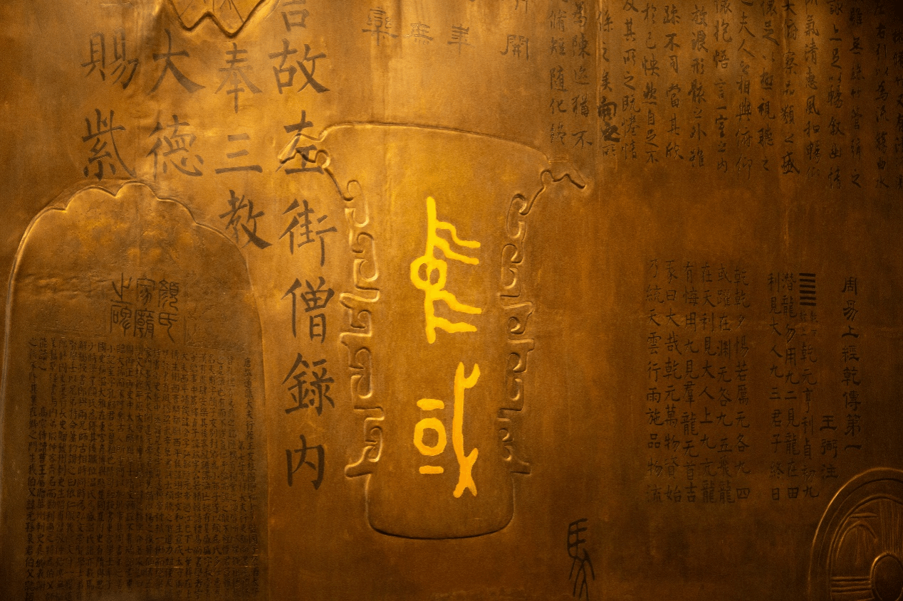 在参观《赓续文脉 踔厉前行》西部文化展时,同学们在青铜器何尊展柜前驻足,墙上的刻绘与校内何尊相互呼应,形成“何尊双壁”,跨越时空延续文脉。在青铜器的兽面纹与饕餮纹中,大家读懂了器物承载的礼制密码——从何尊铭文“宅兹中国”的庄严宣告,到商周酒器“尊卑有序”的形制规范,每一道纹路都在诉说先民“以器载道”的文明构建智慧。这场跨越时空的对话,从青铜的厚重“硬度”中提炼出文明延续的坚韧力量。商周匠人以滚烫铜汁浇铸礼制秩序,今日青年则怀揣敬畏守护文化原典,更以创新之力激活传统基因。正如铭文书写需“传遗后世子孙”。新时代的“何以中国”之问,正由我们以自信为锤、热爱为范,在青铜文明的脉络上镌刻时代答案。