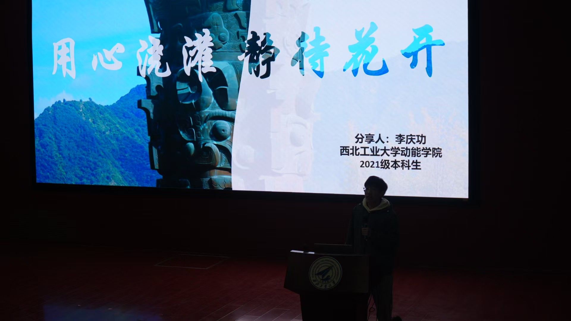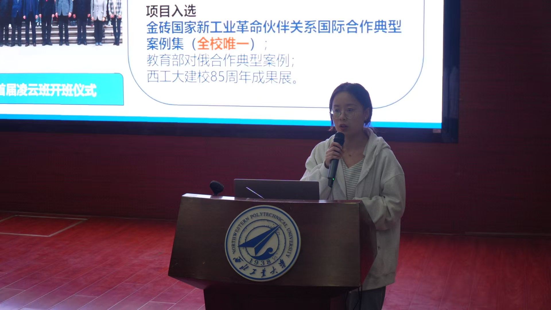 2024级硕士研究生广欣然代表凌云班(LY021201班)分享本科生模范班级的成长历程。三年来,他们学业成绩全员90+,课程满分高达200余人次,获得“优于俄方同期学生”的高度评价。他们当中30余人次通过中宣部、中国驻俄罗斯大使馆等选拔作为中国青年代表,参加中俄经济论坛等各大国际活动并发言,展现了西工大学子的优秀表现。他们将把航空报国的大志,化作对学习生活中每一个目标的冲锋!广欣然表示凌云班的故事,不仅是一个班级的成长传奇,更是西工大动能人航空报国的生动缩影。他们用“中国航空发动机的明天,由我们去开创!”的誓言,鼓励西工大学子接过航空强国的接力棒,用直冲云霄的凌云志,托举起西工大学子的航空报国梦。