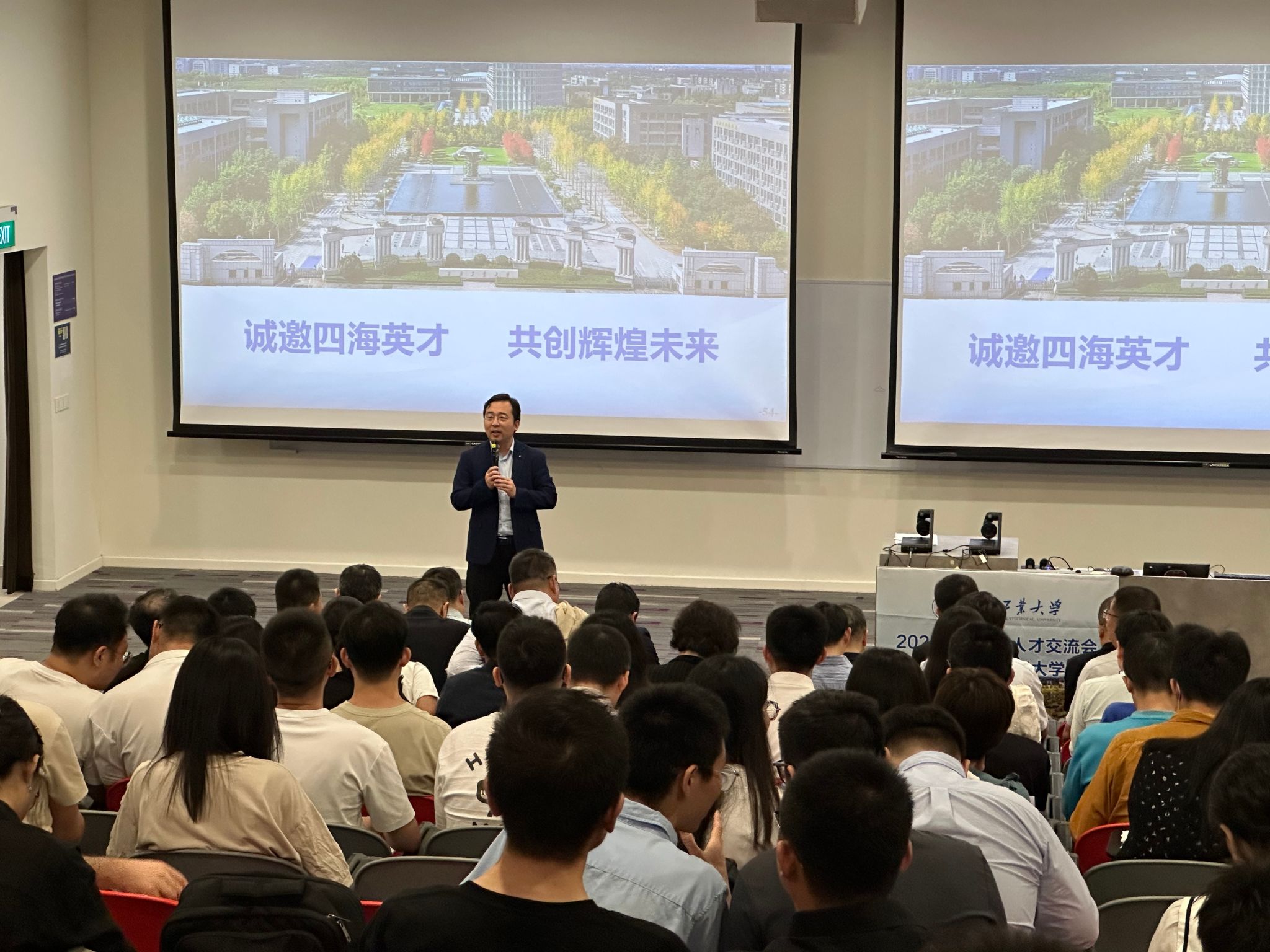 在新加坡期间,代表团于2月27日和28日在新加坡国立大学和南洋理工大学举办了人才交流会。两场交流会均吸引了众多青年学者参会,现场座无虚席,反响热烈。刘存良院长详细介绍了学院的学科特色、研究方向、科研平台以及人才引进政策。会后,代表团与有意向的学者进行了深入的一对一交流,解答了他们关心的问题,增进了彼此了解。