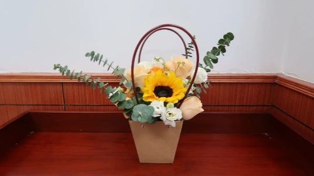 活动现场,花艺师为同学们讲解了基础花艺知识,包括花材选择、色彩搭配、造型技巧等,并演示了插花技艺。师生们以向日葵、玫瑰、洋桔梗等花材充分发挥想象力,创作出独具个人风格的花艺作品。
