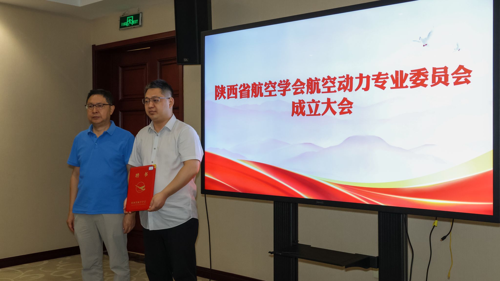会上,陕西省航空学会助理秘书长穆豹特宣读《关于同意陕西省航空学会航空动力专业委员会成立的批复》,随后,钟诚文秘书长为李磊主任颁发航空动力专业委员会主任聘书。对提名的陕西省航空学会航空动力专业委员会副主任委员人选,经委员表决,确定中国航发西控陶毅研究员等6人为副主任委员。