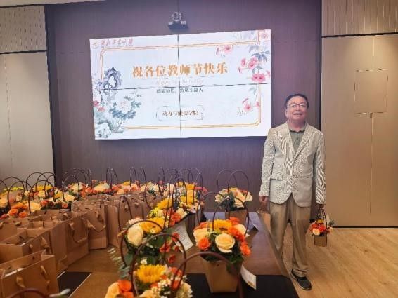 手写贺卡上,一笔一划皆是真挚,字里行间满溢着对师者的崇敬与祝福;盛放的鲜花旁,笑意盈盈格外动人,芬芳映照着老师们眼中的欣慰与温柔;专属定制的礼物里,每一处细节都藏着用心,凝聚着学院对每位教师的深切致谢。