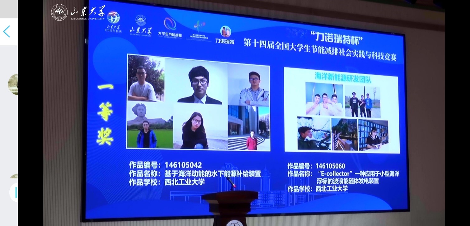 动力系统节能减排创新实践基地精心组织学生认真准备、积极参赛,最终获得一等奖3项、二等奖3项、三等奖5项的优异成绩。“基于海洋动能的水下能源补给装置”、 “‘E-collector’一种应用于小型海洋浮标的波浪能随体发电装置”和“分布式电推进航空燃料电池动力系统”分别获得一等奖;“‘天山飞侠’ ——基于三维环境感知的无人机智能垃圾拾取装置”、“汽车尾气的净化以及剩余化学能余热再利用设备”和“基于‘开式转子发动机’的对转水下推进器”分别获得二等奖。