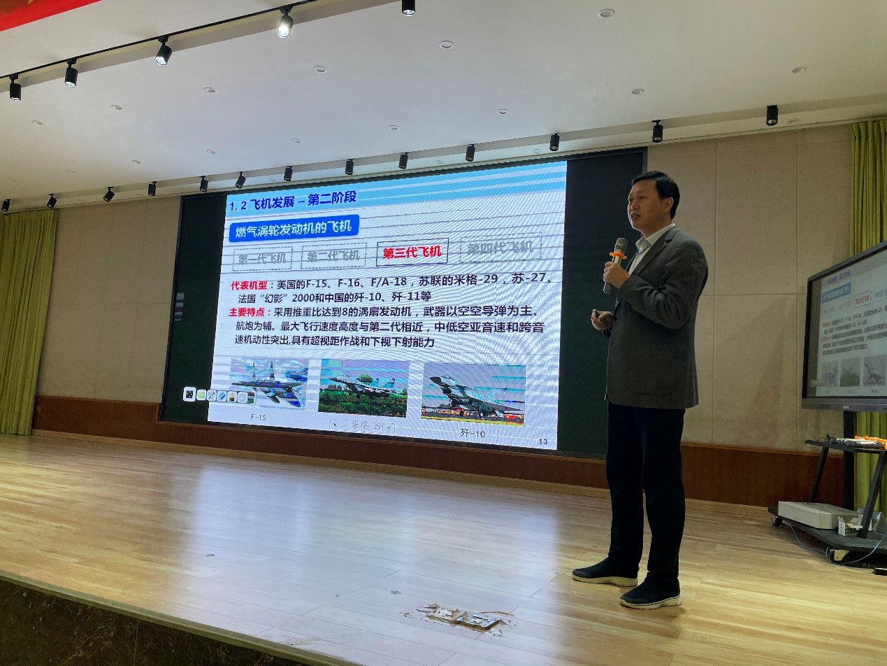 张开富助理还分别为两所学校的学生做了以《航空科学技术的发展历史与未来》为主题的科普报告并进行了招生政策宣讲。他从航空科技发展历史、国际航空科技发展、我国航空科技发展、未来飞行器发展趋势等四个方面开讲,为同学们送上了一场航空科普盛宴。最后,他还结合学校简介、优势学科、招生政策等为同学们进行了宣讲并解答了学生们提出的相关问题。