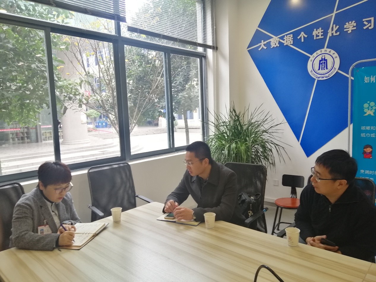 上午10点,刘江副书记带队首先前往川大附中(第十二中学)与中学领导进行了回访交流,川大附中校长助理、课教处主任张谦老师及课教处副主任杨入境等参加了交流。张谦助理向大家介绍了川大附中的办学历史、学校基本情况以及“川大附中研究文化”的办学特色,她表示希望在学生创新能力培养、科技竞赛等方面和西工大加强合作;刘江副书记就学校招生宣传工作和川大附中的老师进行了交流,对川大附中的大力支持表示感谢,他说,西工大高度重视人才培养工作,尤其是把本科生培养作为重中之重,设立了多个王牌特色班,为培养家国情怀强烈、追求卓越的领军人才打下了坚实的基础,非常欢迎川大附中的优秀学子到西工大来学习深造,他还表示西工大在创新创业教育和科技竞赛等方便有先天的优势和特长,希望在后期继续加强交流、深入合作,为中学的人才培养工作助力。