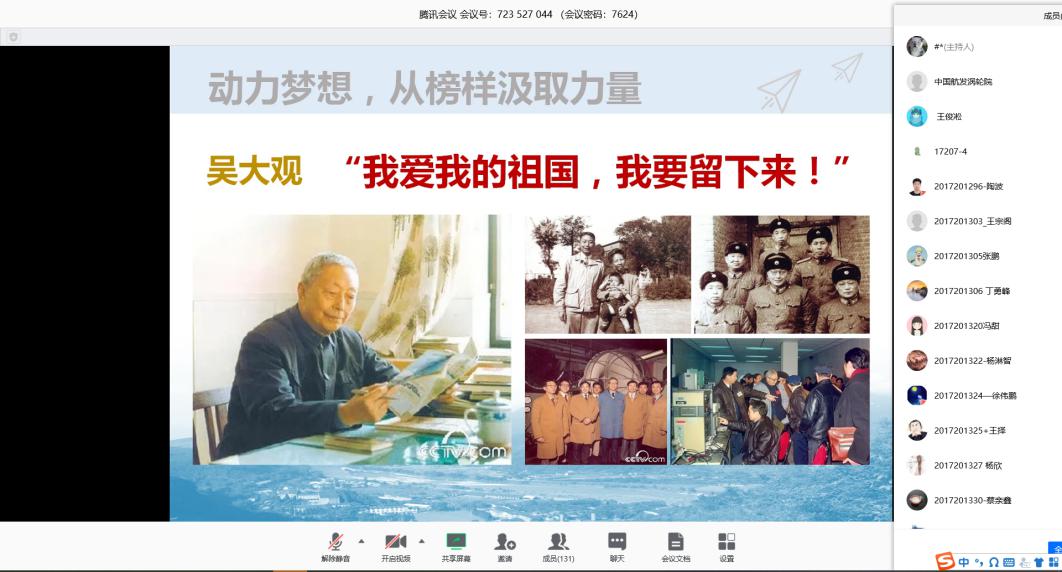 吴忠跃书记主要从:动力梦想、三种精神、仰望星空这三个方面展开叙述。鼓励同学们要从榜样汲取力量、从历史寻找动力、用坚守实现价值。课前,吴书记还特别强调我们应该向所有众志成城战疫情的中国人民致敬,同时希望在座的每位同学可以克服困难,将时间用在有价值的事情上,时刻学习充电。