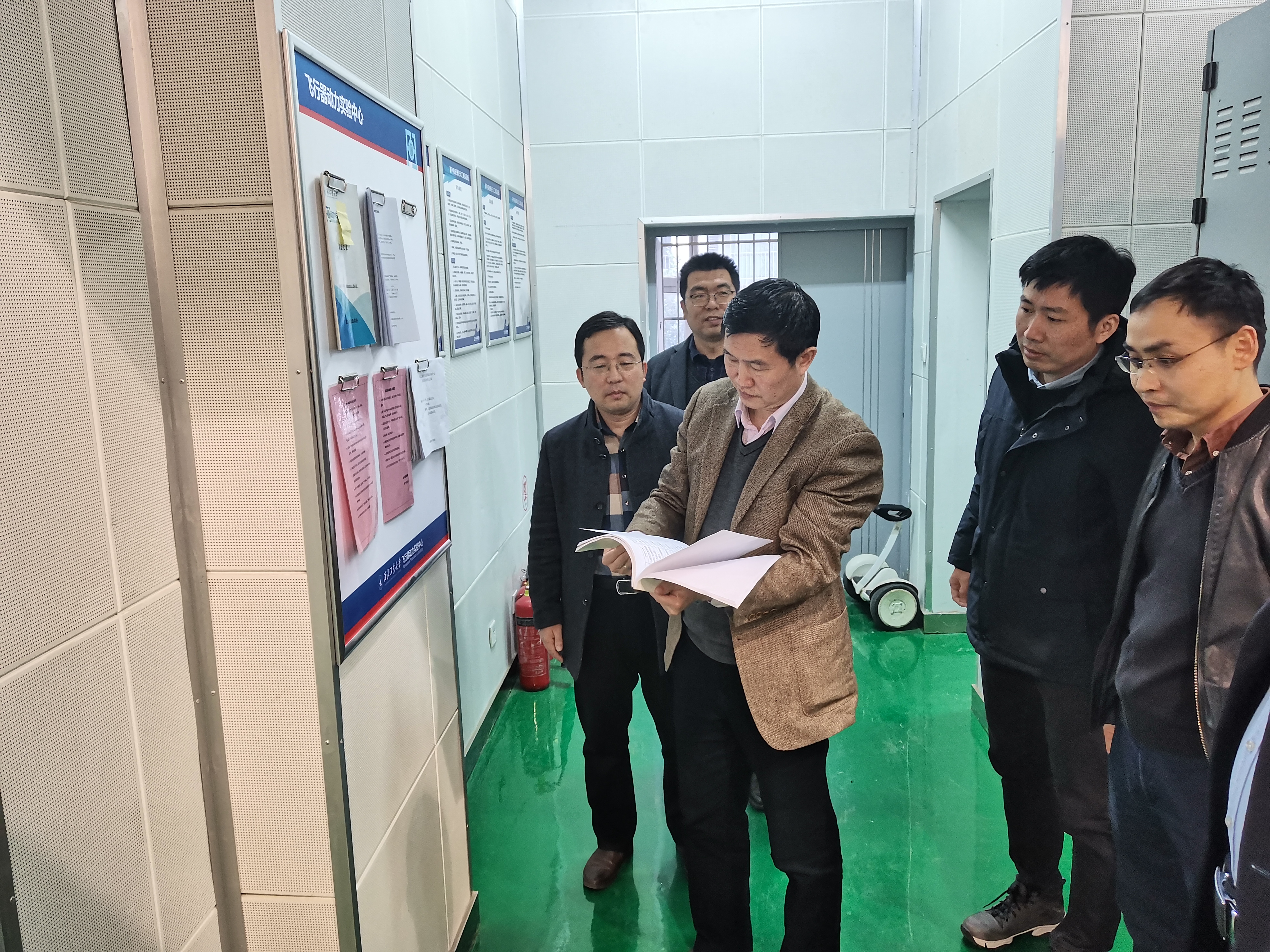 随后,詹浩部长在学院人员的陪同下对飞行器动力实验中心进行了安全检查。重点检查了叶栅实验室、航空发动机结构动力学与故障诊断实验室、传热与冷却实验室、喷气推进理论与研究实验室。在飞行器动力实验中心查看了实验室的规章制度,实验室记录登记本,并现场询问实验室工作人员开展实验时的安全防护措施以及应急预案等情况。