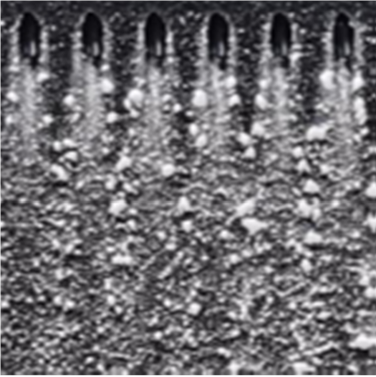 本文在不同吹风比和攻角条件下,研究了几种典型气膜孔型对微颗粒沉积的影响。可以发现,相对于圆柱孔而言,锥形、扇形、CONSOLE等孔引起的微颗粒沉积在展向上要均匀一些,块状沉积明显减少,这一点能够减少微颗粒沉积对气膜冷却带来的风险。而且,锥形、扇形、CONSOLE等孔(尤其是前两者)引起微颗粒沉积量要比圆柱孔小得多,这也有助于减少微颗粒沉积对气膜冷却带来的风险。同时,锥形、扇形、CONSOLE等孔随着吹风比或攻角增加,其引起的沉积量并未明显增加,表现出了较强的减少风险的鲁棒性。本文虽然基于气膜冷却流动机理说明了这几种孔引起的微颗粒沉积特性的差别(详见论文),由于实验上难以同时获得详细的流动结构,并未给出定量的说明,将在后续研究中结合数值模拟进行更为 深入的研究。