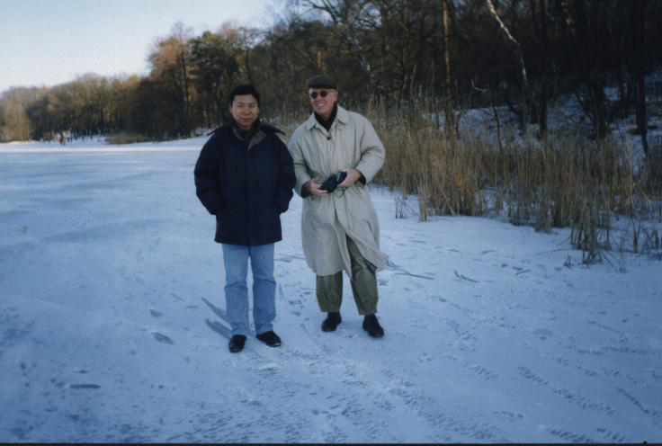 2001年冬与德国导师U.Michel教授漫步柏林Wannsee湖边