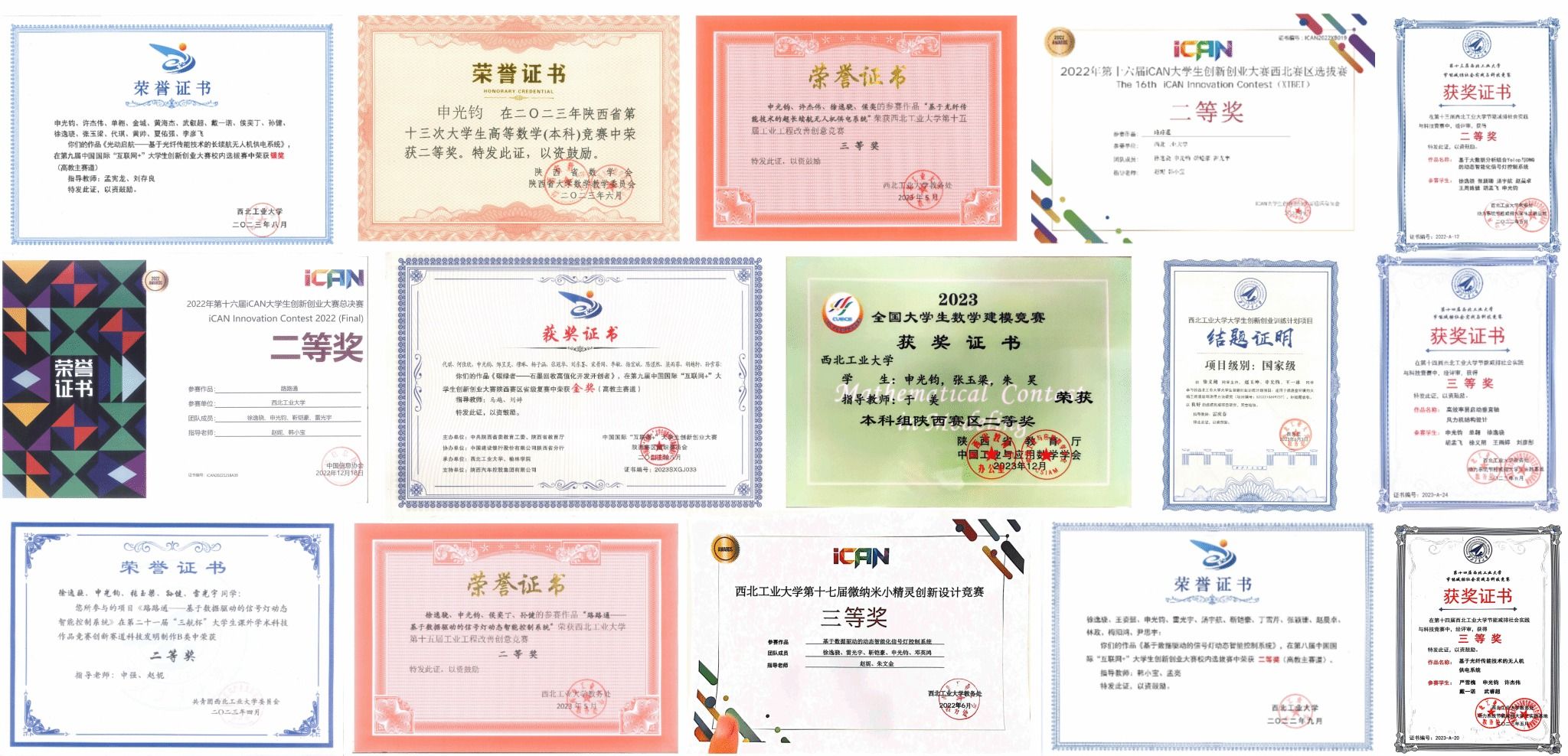 申光钧的部分竞赛证书