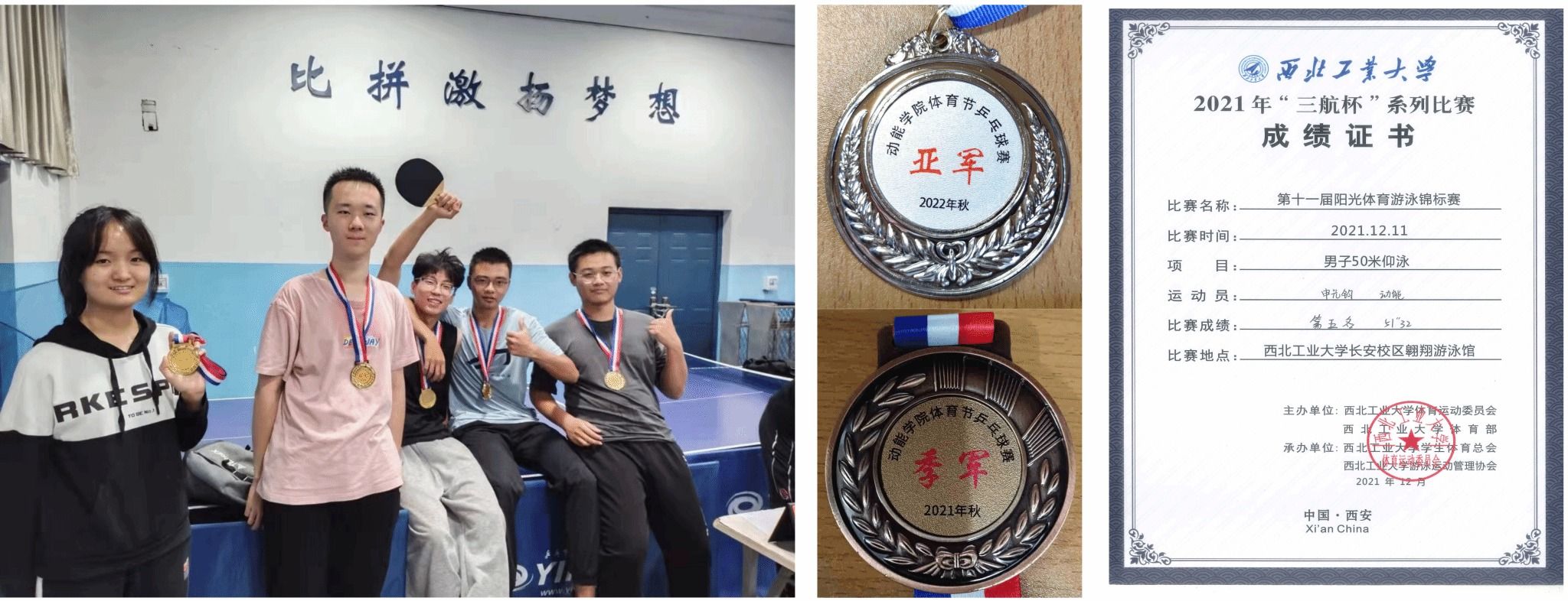 申光钧参加体育比赛的部分证书和照片