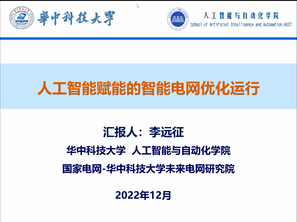 陈映雪副教授邀请,华中科技大学人工智能与自动化学院李远征副教授围绕《人工智能赋能的智能电网优化运行》进行了一场精彩的学术报告。