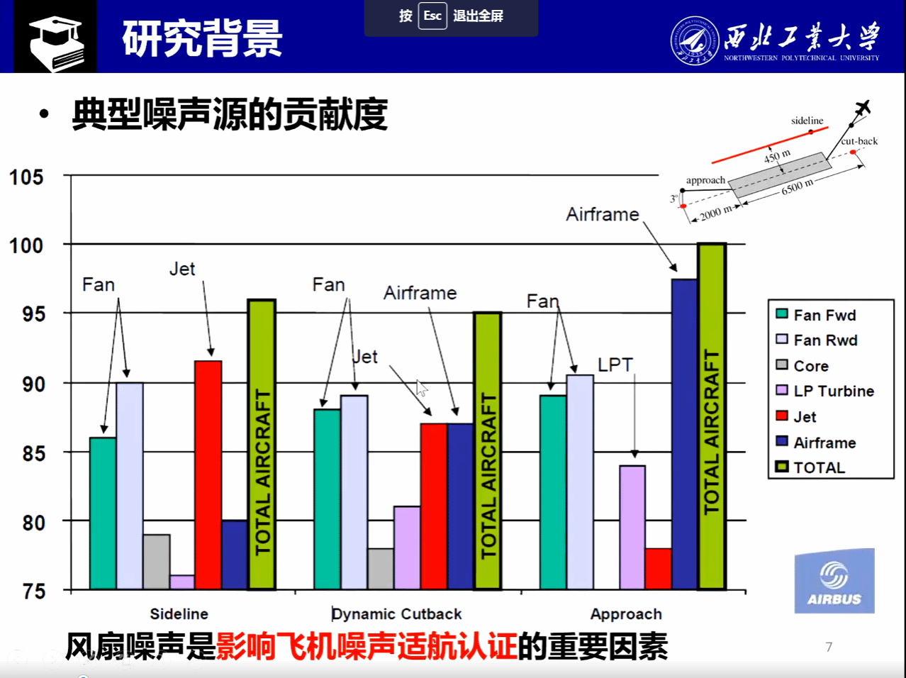 首先在研究背景部分,周杰教授指出:飞机噪声除了影响飞机舒适性、产生噪声污染以外,飞机强噪声还会造成飞机的结构声疲劳,通过今昔对比介绍了飞机噪声主要来源。随着绿色航空概念的提出,超大涵道比发动机成为研究热点,但与传统发动机相比,超大涵道比发动机直径大、长度小、进气道短的特点,由此导致了声衬安装空间小的问题,这对声衬吸声效率及质量提出了更高的要求,因此需要超薄轻质、宽频强吸声的新型声衬研发。