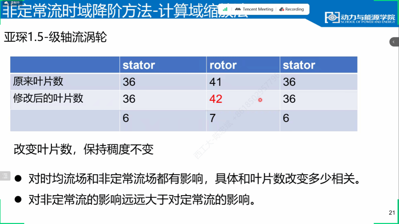王丁喜教授首先介绍叶轮机内的流动具有固有的非定常特性。随着叶轮机朝着高负荷和紧凑的方向发展,其内部的非定常流特性不断增强。非定常流对压缩系统的效率和气动稳定性、气弹稳定性、强迫相应和噪声有重要影响,压缩系统任何性能的进一步提升将来自对其非定常流的更好理解和控制。尽管如此,利用非定常流实现叶轮机性能增益的设想仍然没有得到完全的落实。这主要源于非定常流对叶轮机性能影响的高效定量评估非常困难。