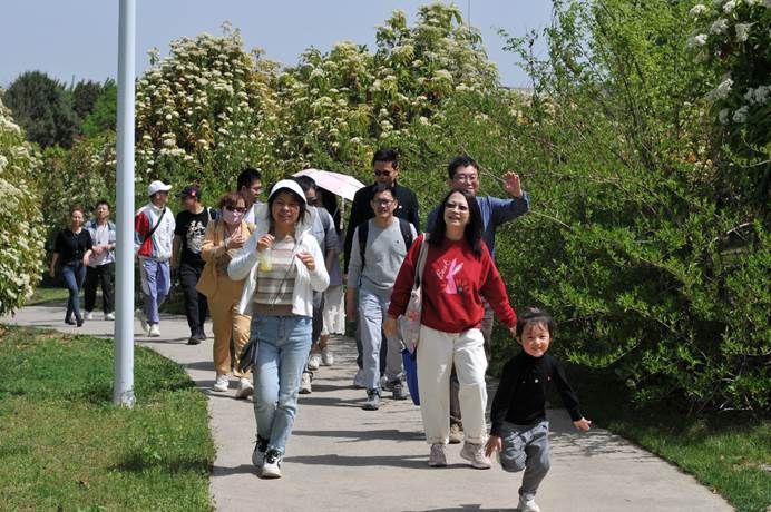 上午十点开始,冬青学会青年教师一行开始在植物园中徒步,近距离感受大自然的神奇与壮美,植物种类繁多,如诗如画,百花争艳,香气扑鼻,令人陶醉。沿小道一路朝观景台走去,植被层次分明,山水相映,让人流连忘返。多位青年教师感叹第一次深入秦岭北麓徒步,感受到作为我国南北分界线秦岭的巍峨雄壮及其中蕴含的生态多样性,是一个值得常去放松和认识自然的好地方。经过多年的保护,秦岭国家植物园已不仅是一处观光胜地,更是生态保护的典范,山水林田湖草交相辉映,成就了这片大自然的壮丽画卷。