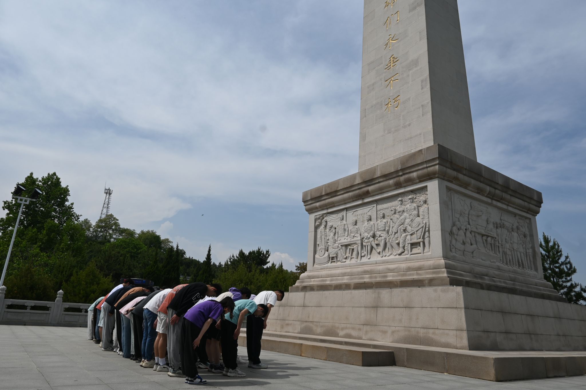 走出纪念馆,登上高台,大家一同去瞻仰了陕甘边革命英雄纪念碑。大家对纪念碑三鞠躬,缅怀为了中国革命成功而不懈努力的先辈们。
