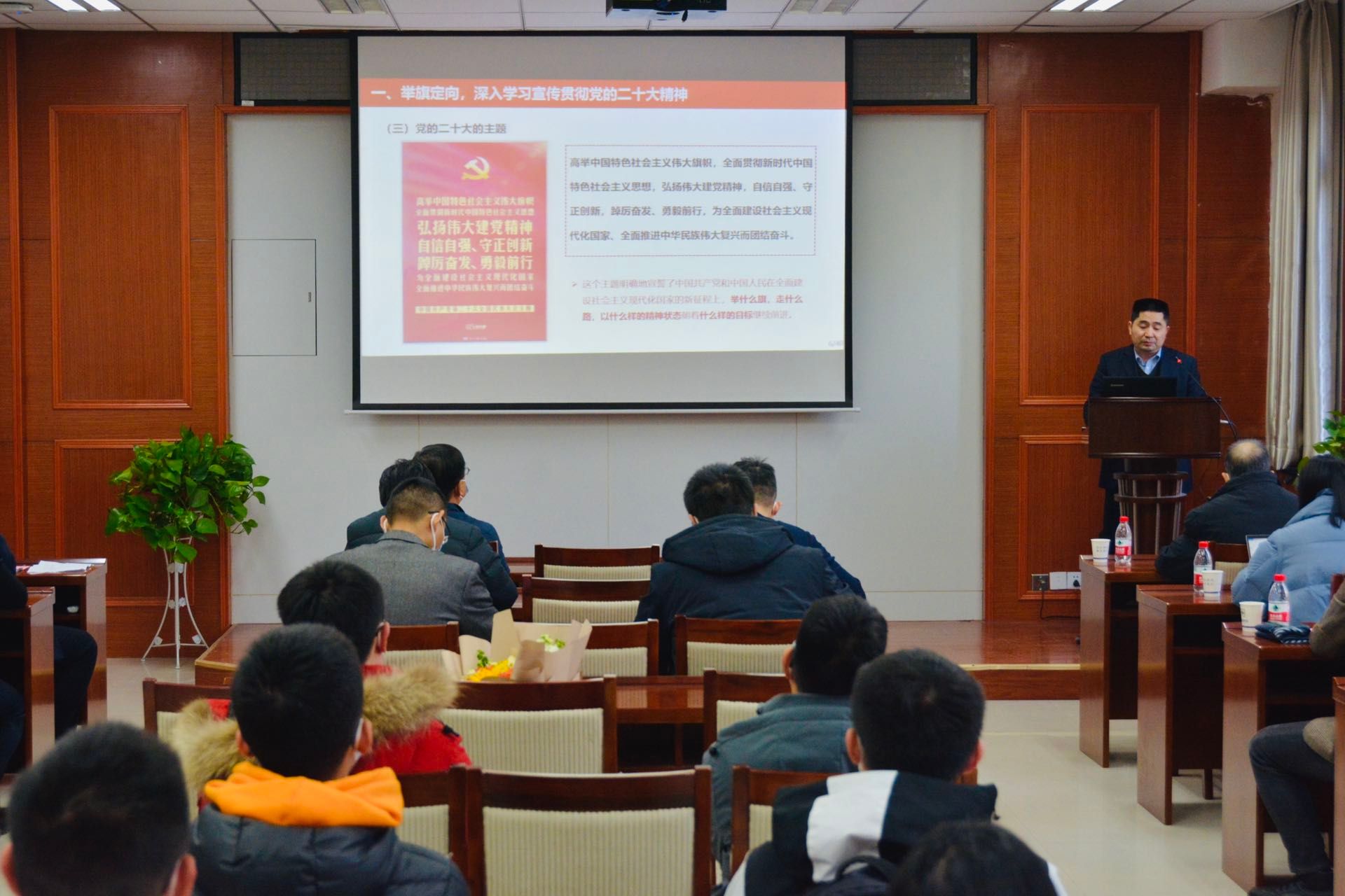唐玉生同志从举旗定向深入学习宣传贯彻党的二十大精神,知行合一扎实推进学校《人才工作高质量发展行动计划》等两个方面进行宣讲。他从党的二十大报告原文出发,就党的二十大精神的丰富内涵和重大意义进行了详细解读。并结合学校人才工作情况,细致解读了《人才工作高质量发展行动计划》从“四个方面问题”、“六个进一步”到“二十条举措”的落实情况。他指出,要把进一步完善党管人才的工作格局、加强对人才的政治引领和政治吸纳、强化学校人才服务保障、突出重点领域引才、创新完善引才工作机制、加大人才对外开放力度等20个方面统筹谋划,立足学科发展,结合学院实际,细化方法举措,为实现一流人才队伍建设目标贡献力量。