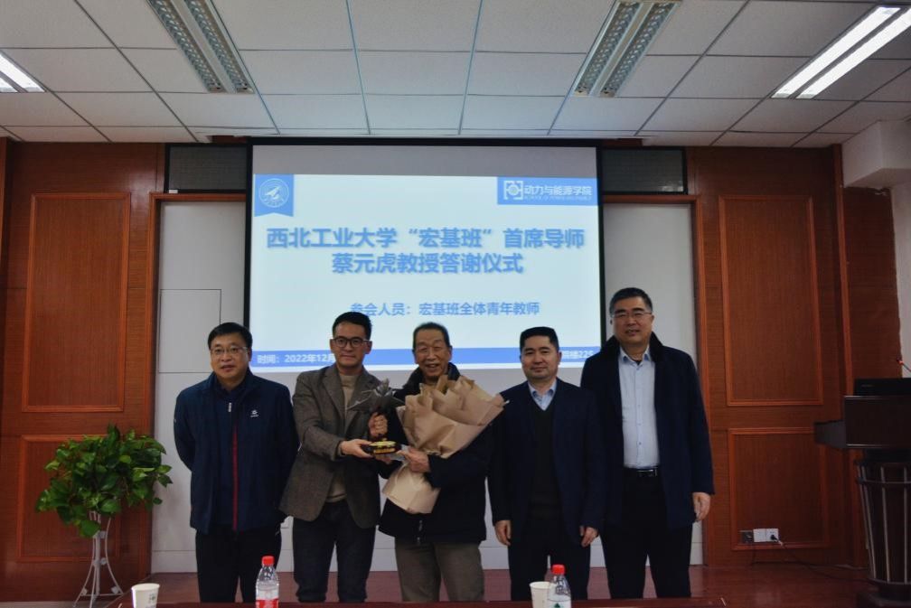 授课结束后,由青年教师杜昆代表宏基班全体青年教师,对蔡元虎老师表达了诚挚的感谢。他介绍到,为打造航空动力杰出人才培养基地,学院特设“宏基班”,邀请中国航空发动机学科自主培养的第一位博士蔡元虎教授担任首席导师。已为学院宏基班青年教师开展了50次航空发动机系列讲座,帮助了我校及行业广大青年教师快速了解和掌握航空发动机基本科学问题,累计超过60家单位、1万人次参与学习。