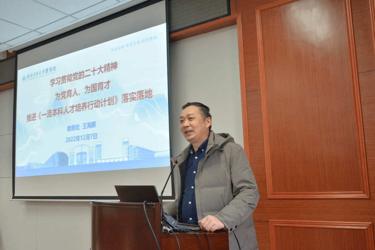 为深入贯彻落实党的二十大精神,全面推进一流本科人才培养行动计划落实落地,12月7日,学校党的二十大精神宣讲团成员、教务处处长王海鹏为hanime1