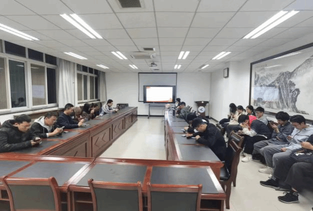以竞促学——10月19日晚,在学院楼107会议室,宣传委员路培强首先为到会的22位党员介绍了本次知识竞赛的背景和目的,之后正式开始此次竞赛。本次竞赛创新的采用了“线下会议+云答题”的模式。线下会议,即大家聚在一起进行答题,方便赛后的沟通交流和总结,营造浓厚的学习氛围;云答题,党员们可通过扫码用手机答题,方便了成绩统计和答题情况分析。